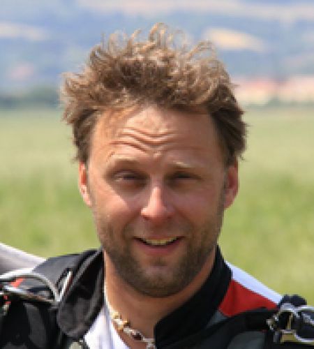 AFF-Lehrer, Tandemmaster. Etwas mehr als 1000 Sprünge. Stets gelassen und hilfsbereit mit einer Leidenschaft fürs Dynamic-und Winkelfliegen."